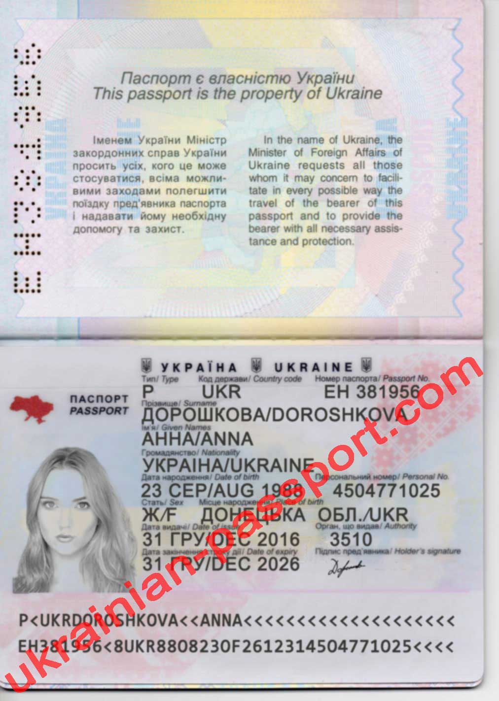 Esquema de fraude: Pasaporte ucraniano falso: EH381956