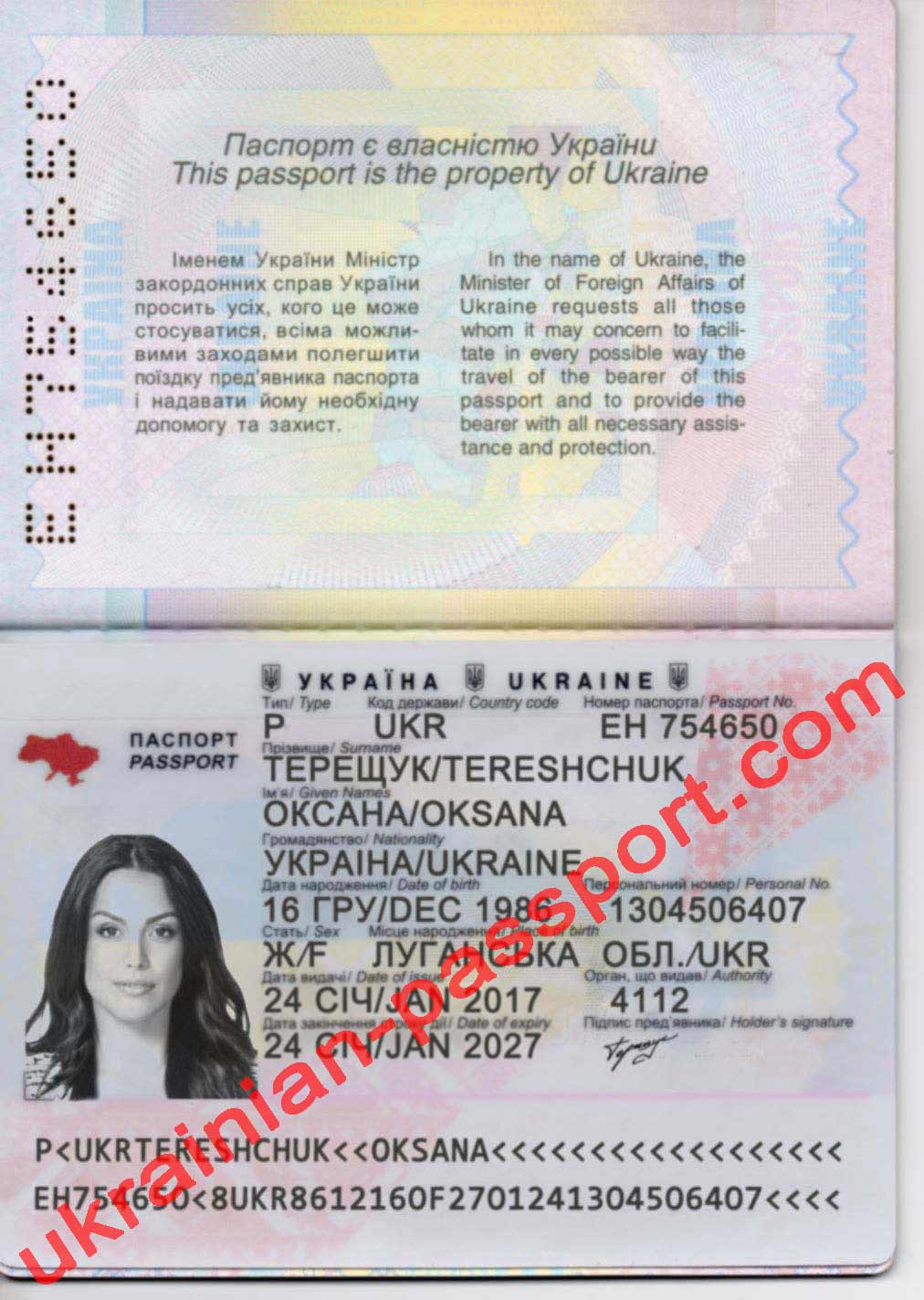 Esquema de fraude: Número de pasaporte ucraniano falso: EH754650