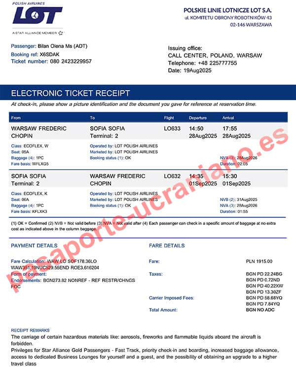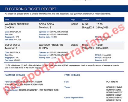 Ella también exigió una promesa de otros 1.000 € cuando llegara a Bulgaria, alegando que estaba en una situación económica difícil. Posteriormente, pidió más dinero “para demostrar confianza” y envió la foto de un pasaporte como garantía. Así, la víctima le compró un billete de avión de Varsovia a Sofía para el 28/08 y le envió otros 500 €, llegando a un total de 1.050 €.