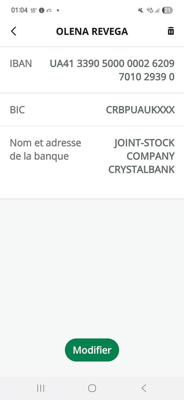 Esquema de fraude: Olena Revega, nacida el 21/06/1987, fue conocida por la víctima a través del sitio Fdating.com. Durante varios meses de comunicación en línea, se presentó como profesora y reforzó su historia con fotos en una oficina que parecían coincidir con relojes y objetos de fondo.